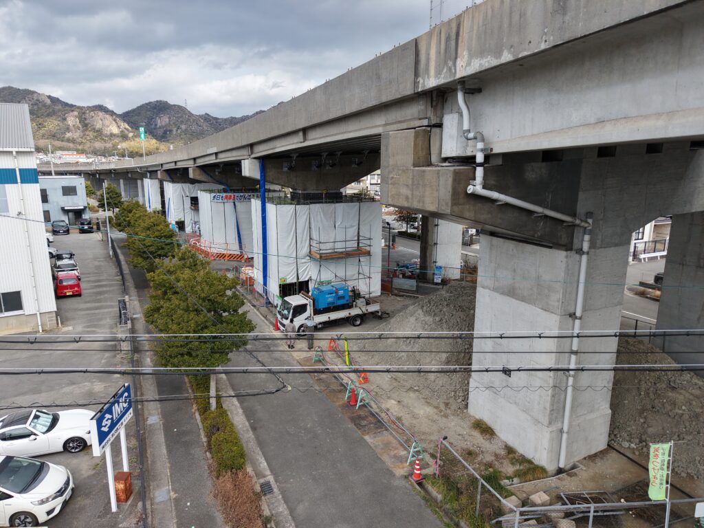 R7.12.26 播但連絡道路 橋梁耐震補強修繕工事(第7・6高架橋) 12月末進捗状況(P64~P57 本工事完了) 12月末進捗状況(P56~P48 本工事完了) 12月末進捗状況(P47~P40 橋梁補修工 施工中) 12月末進捗状況(P39~P37 橋脚巻立工 施工中) 12月末進捗状況(P36~P33 橋梁補修工 施工中) 12月末進捗状況(P30~P33 橋脚巻立工 施工中)